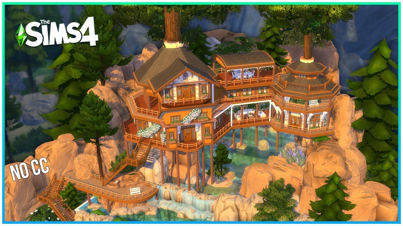 10 Tree House Over Waterfall No Cc Sims 4 Speed Build Kate Emerald Youtube Sims House Sims 4 House Building Sims 4 Houses
